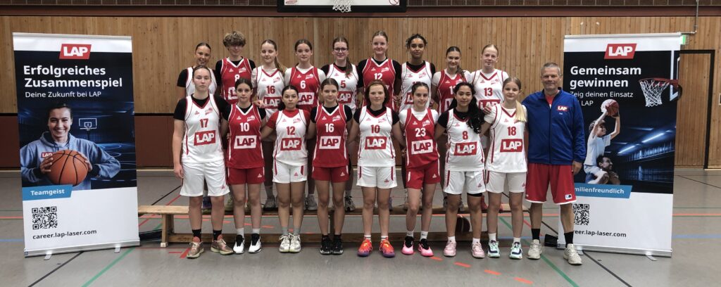 Die wU16-2 wird in der kommenden Saison in der Offenen Runde A spielen, die wU14-1 setzte sich aus Spielerinnen der Leistungsrunde und Offenen Runde A zusammen. Die wU16-2 startete überlegen, weil von Beginn an die Verteidigung klappte, die Laufwege beim Schnellangriff passten und ansonsten im Angriff mit gutem Spacing zusammengespielt wurde. Hinzu kam, dass die wU14erinnen mit etwas Respekt ins Spiel gegen die älteren Mädchen gingen, zumal diese alle im Leistungsrundenkader trainieren.